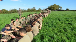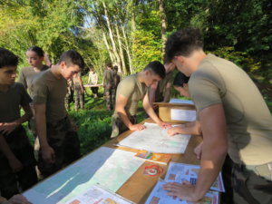 Le premier week-end a commencé par une activité sur le terrain en présence de seize jeunes de la Préparation Militaire Marine. Les deux brèves averses n’ont pas entamé la bonne humeur. En soirée, sous les projecteurs, les cadets ont assisté à une brève cérémonie d’accueil de leur promotion « Artois 1915 » en référence au 65e régiment d’infanterie. Ensuite, organisation d’un bivouac en gymnase puis, la première cérémonie des couleurs le dimanche matin suivie des tests physiques (pompes, course à pieds et natation).